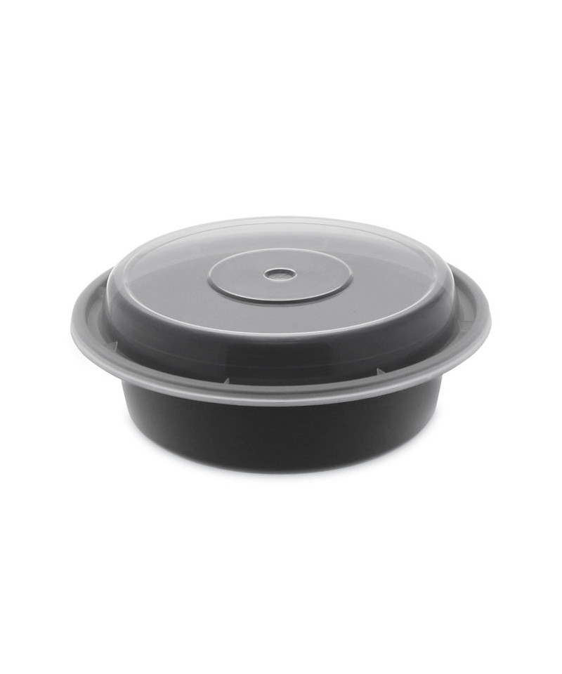 Newspring VERSAtainer Microwavable Containers, 16 oz, 6" Diameter, Black/Clear, Plastic, 150/Carton