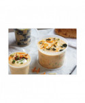 Versatile, economically priced containers accommodate both hot and cold foods. Tight-fitting, leak-resistant lid seals in heat and preserves your menu items' flavors. Compact nest-style stacking minimizes their storage footprint. Microwavable, dishwasher-safe and reusable.