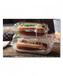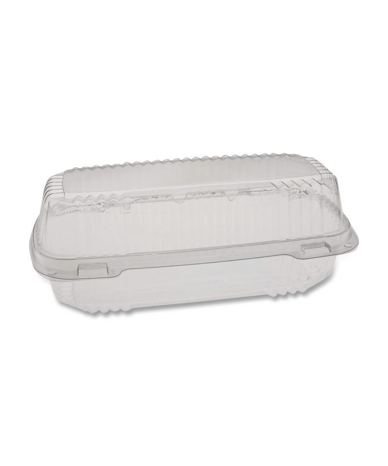 Enhance your packaging with the clarity and distinction of PET bakery containers. Our packaging effortlessly combines style and functionality to meet all your food packaging needs effectively. Made from strong PET material with a wide temperature resilience range (-20°F to 120°F) enables placement in freezers and heated display cases. Crystal clear packaging to optimize merchandising of baked goods. Great for merchandising bakery items, cheeses, produce, sandwiches, and more. SmartLock® system features a tight, audible click closure that helps ensure maximum food freshness. Smooth front panel makes sticker-labeling easy. Strong, rib-reinforced sides and back accommodate heavy items and provide enhanced crush resistance. Break-resistant hinge is flexible enough for easy closure and reliable enough for repeated openings and closings.