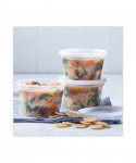 Clear, smooth-wall design makes order recognition easy. Tight, leak-resistant seal protects contents from contamination and helps prevent messy leaks and spills. Exceptional temperature resilience enables use in freezers, refrigerators and microwaves.