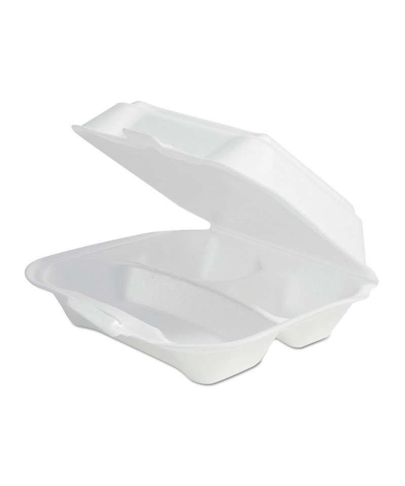 Ideal for takeout service or for conveniently packing leftovers. The foam is well insulated, meaning that it will maintain the food's proper serving temperature. Its hinged lid makes certain that your food will stay safe during transport, eliminating concerns about leakage and spillage.