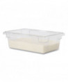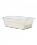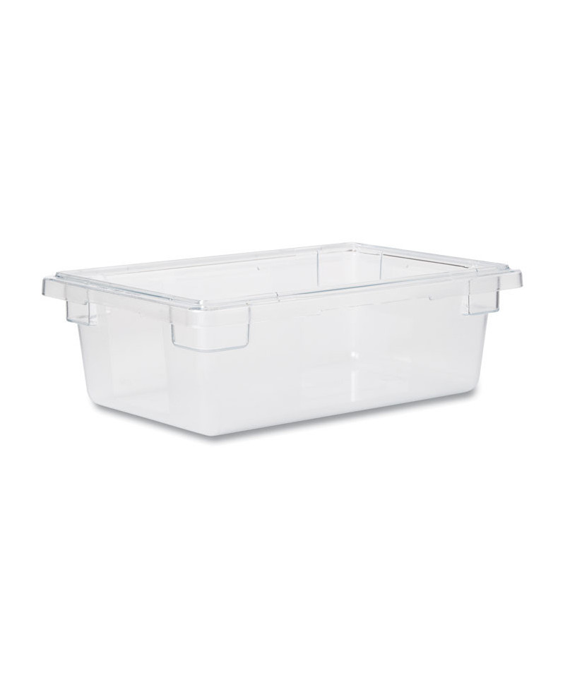 The Rubbermaid Commercial Food Storage Tote/Box is durable, versatile and sized to fit into existing racks and counters. These bulk food storage containers are NSF and USDA Certified and constructed of break-resistant polycarbonate. Dishwasher and freezer safe. Snap-on lids (sold separately) are tight-fitting. Includes date panels.