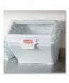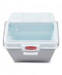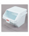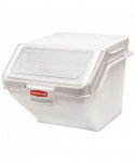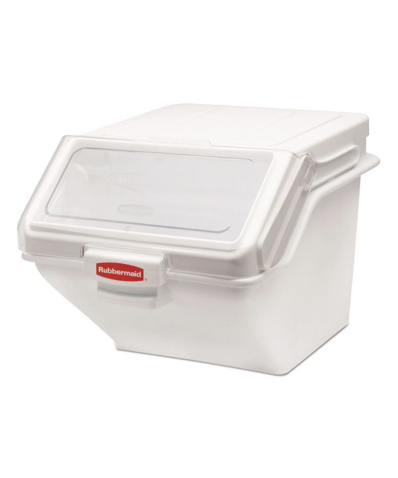 he Rubbermaid Commercial ProSave™ Shelf Ingredient Bin offers quick one-handed access while stacked and integrated measuring tool that increases preparation efficiency, space optimization, and promotes food safety compliance. This food storage container is constructed of polycarbonate and includes a 2-cup measuring scoop. The bin can be used for storing flour, sugar, and any other dry ingredients. These bulk food storage containers resist scratches, impacts, and certain chemicals. The food storage container has a clear lid, which allows its contents to be identified at a glance.