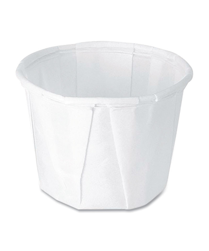 Treated, heavy-duty, multi-pleated paper cups hold up well against liquids. Rolled-wax rim maintains shape and tightness even when wet. Perfect for small servings of sauces and dressings-on premise.