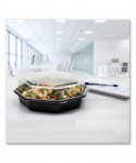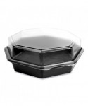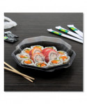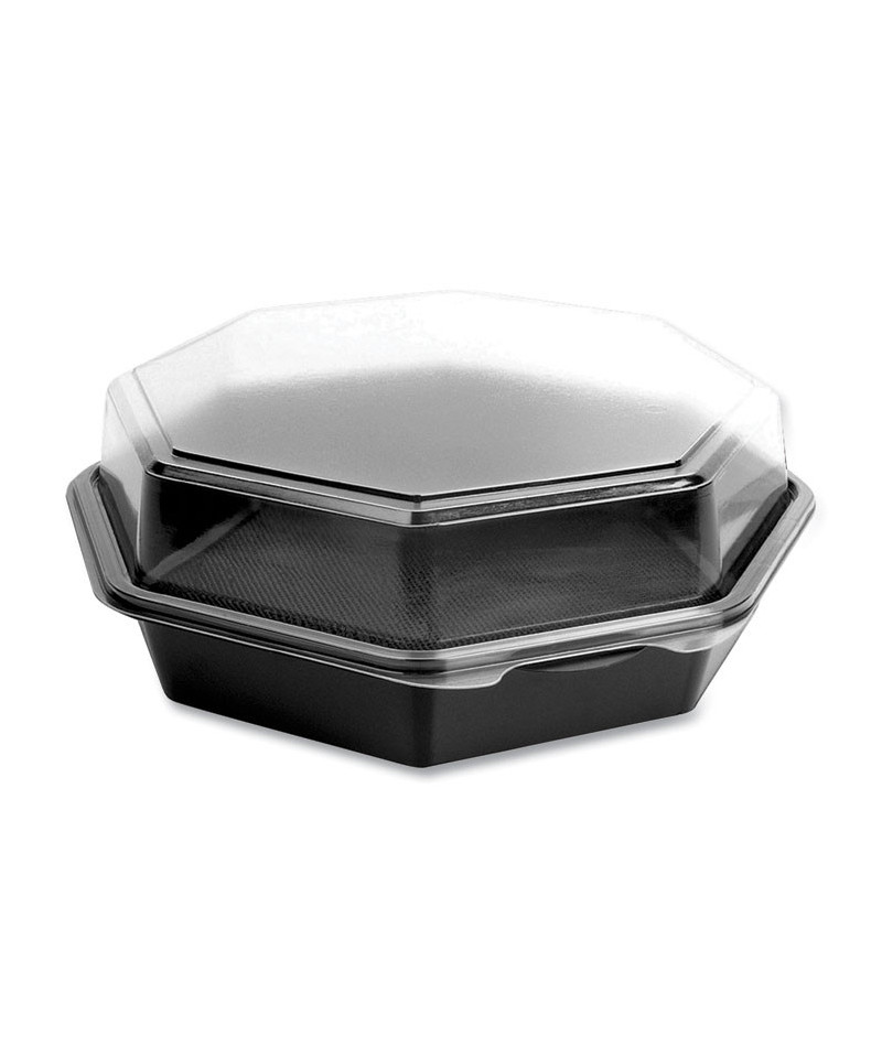 Contemporary, octagonal design draws extra attention to your delivery and carry-out items. Tear-Away perforations on the hinged lid simplifies serving. Leak-guard seal.