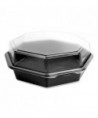 OctaView Hinged-Lid Cold Food Containers, 42 oz, 9.57 x 9.2 x 3.2, Black/Clear, Plastic, 100/Carton