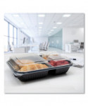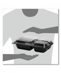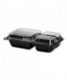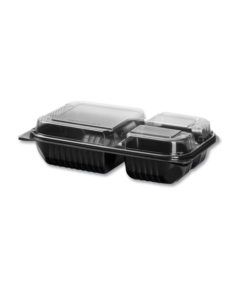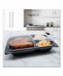 Hinged-Lid Dinner Box, 3 Compartments, 32 oz, 11.5 x 8.1 x 3, Black/Clear, Plastic, 100/Carton
