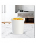 Whether you're dishing up hot or cold meals, these durable paper food containers help you put your best food forward. Package heart soup, pasta, frozen yogurt and more with confidence. The wide mouth and squat profile make it easy to fill and enjoy. Worry less about unexpected messy situations, like leaks and excessive condensation this container has a moisture-resistant lining. Ensure freshness and cleanliness when paired with a compatible lid (sold separately). From food delivery to ice cream shop takeout, these containers have you covered.
