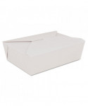 Traditional, all-in-one food containers allow you to take food from the restaurant to the road. An integrated lid eliminates fuss with hard-to-secure plastic lids. A polycoated interior prevents leak-through. Four flaps close and tuck in to create a secure closure.