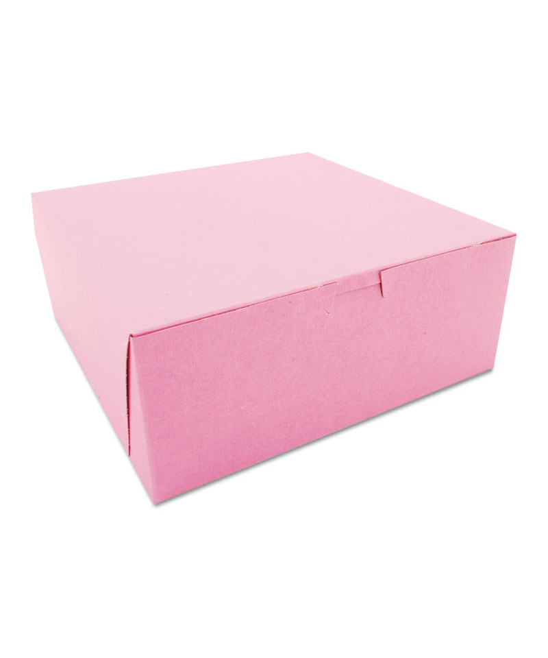 Pink One-Piece Non-Window Bakery Box, 10 x 10 x 4, Pink, Paper, 100/Carton