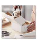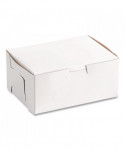 The bakery box is made from high quality paperboard that is white on the outside and Kraft on the inside. Perfect for cakes, pastries, pies and cupcakes. The white, clay-coated exterior accepts a printed logo or business name. Each one-piece box ships flat for transport and storage, but assembles easily into a folded carton with lock-corner closures and a tuck top to secure contents.