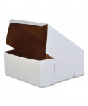 The bakery box is made from high quality paperboard that is white on the outside and Kraft on the inside. Perfect for cakes, pastries, pies and cupcakes. The white, clay-coated exterior accepts a printed logo or business name. Each one-piece box ships flat for transport and storage, but assembles easily into a folded carton with lock-corner closures and a tuck top to secure contents.