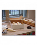 Made from high quality, clay-coated Kraft paperboard, it is perfect for cakes, pastries, pies and cupcakes. Each sturdy, one-piece box ships flat, but assembles easily into a folded carton with lock-corner closures and a tuck top to secure contents.