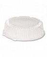 Clear, fluted dome lids are an attractive option for displaying and transporting food trays. Convenient press-n-lift tabs allow for easy removal. Dome edges are trimmed close to the tray edge to prevent accidental uncovering.