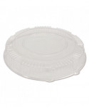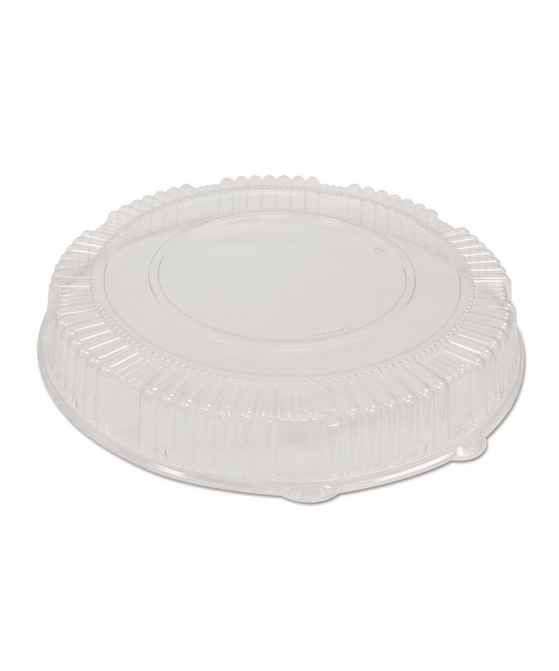 Clear, fluted dome lids are an attractive option for displaying and transporting food trays. Convenient press-n-lift tabs allow for easy removal. Dome edges are trimmed close to the tray edge to prevent accidental uncovering.