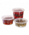 Plastic containers are an excellent way to serve salads, olives, cold cuts and more. Smooth, rounded surfaces take both adhesive and marker labels easily. Refrigerator- and microwave-safe.