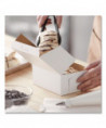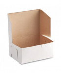 The bakery box is made from high quality paperboard that is white on the outside and Kraft on the inside. Perfect for cakes, pastries, pies and cupcakes. The white, clay-coated exterior accepts a printed logo or business name. Each one-piece box ships flat for transport and storage, but assembles easily into a folded carton with lock-corner closures and a tuck top to secure contents.