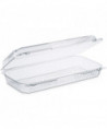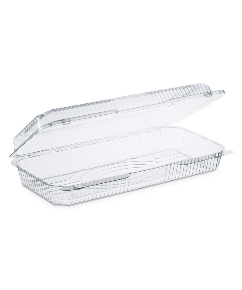 Clear hinged containers offer crystal clarity for excellent product visibility. Dual bar locks ensure a secure closure, even after multiple openings, while sidewall ribbing and chamfered corners increase strength and durability. Lightweight, crush-resistant and stackable. Serve multiple applications.