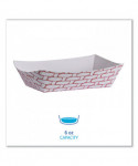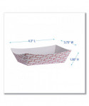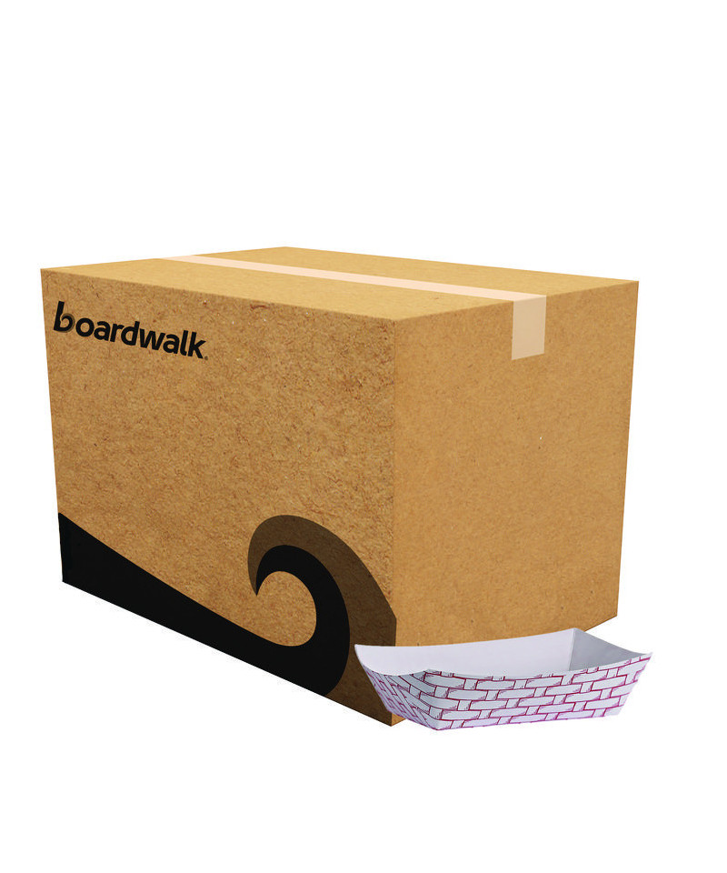 Boardwalk® paper food baskets are an excellent alternative to disposable dinnerware. These baskets are composed of moisture-resistant clay-coated, sturdy paper. The flexible design with high walls to prevent spills is ideal for serving meals to-go at restaurants, cafeterias, food trucks, catering, and special events. Available in a classic, attractive, red and white design to suit all of your disposable dining needs.