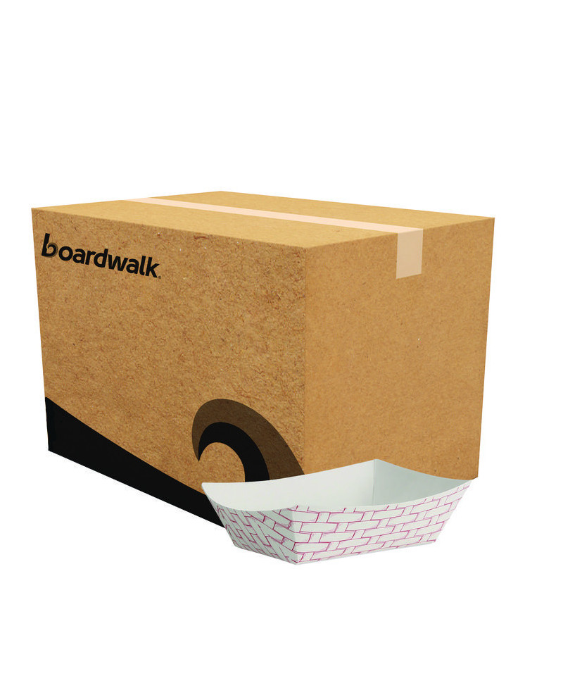 Boardwalk® paper food baskets are an excellent alternative to disposable dinnerware. These baskets are composed of moisture-resistant clay-coated, sturdy paper. The flexible design with high walls to prevent spills is ideal for serving meals to-go at restaurants, cafeterias, food trucks, catering, and special events. Available in a classic, attractive, red and white design to suit all of your disposable dining needs.