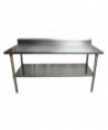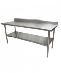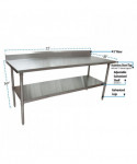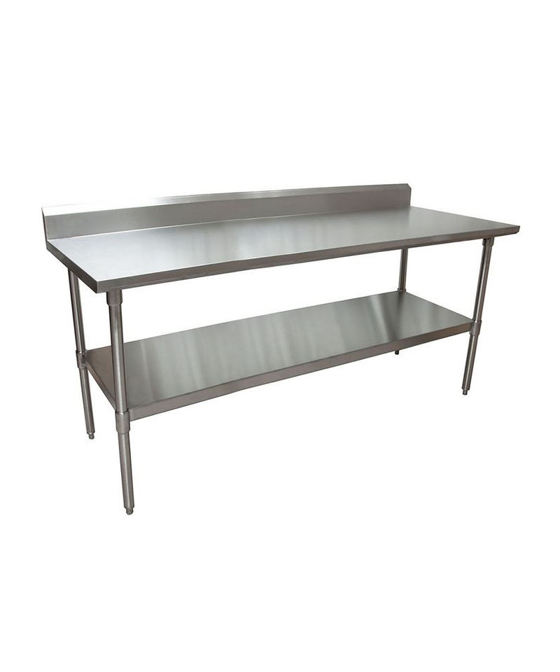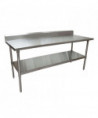 This work table boasts an 18-gauge T-304 stainless steel top, featuring turndown edges on the front and sides for enhanced functionality. Reinforced with channels, the table ensures robustness and durability. A 5-inch backsplash adds an extra layer of protection. The table comes equipped with an adjustable galvanized undershelf, providing versatile storage options. Supported by 1.63" diameter galvanized legs, each leg is fitted with adjustable high-impact corrosion-resistant feet, ensuring a stable and resilient work surface.
