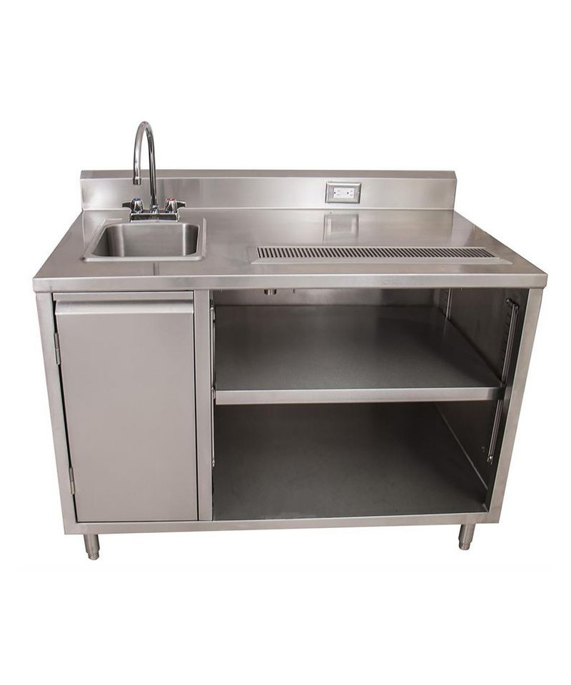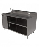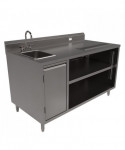Stainless Steel Beverage Table with Left Sink, Rectangular, 30" x 60" x 41.5", Silver Top, Silver Base/Legs