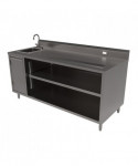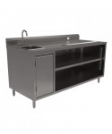 Stainless Steel Beverage Table with Left Sink, Rectangular, 30" x 72" x 41.5", Silver Top, Silver Base/Legs