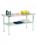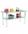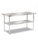 This work table provides a practical and organized workspace solution. The heavy-duty, spacious work surface is crafted from stainless steel with a range of thicknesses and is supported by heavy-gauge channel supports and tubular legs. The convenient undershelf is designed to keep tools, equipment, and supplies organized and easily accessible to boost efficiency.