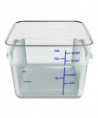 Maximize storage space for a variety of items in Carlisle Squares food storage containers! Tight fitting, color-coded lids (sold separately) encourage organization and reduce cross-contamination. Color-coded liter and quart markings match color-coded lids to ensure a quick and easy match. Keep food organized and separated for sanitary storage.