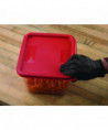 Tight fitting, color-coded lids for food storage containers encourage organization and reduce cross-contamination.