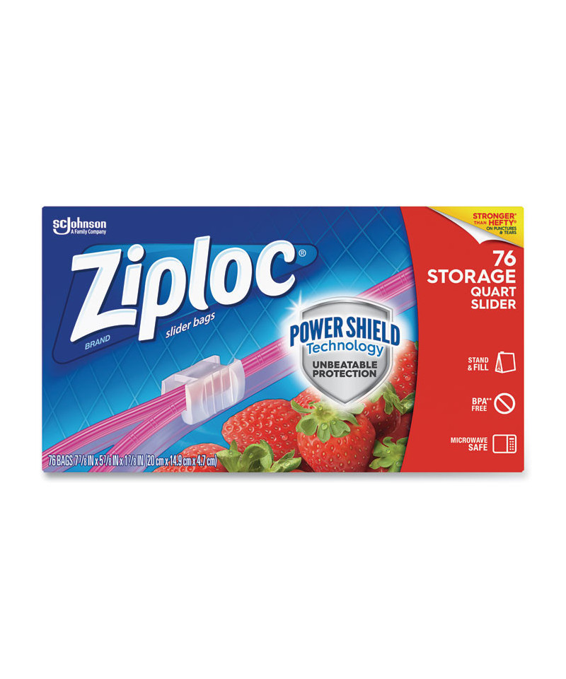 Get unbeatable protection with Power Shield technology featuring an easy close slider and more durable film. Ziploc Brand Slider bags are strong enough to use again. Keep your food fresh with these slider bags. Each bag features a slider closure and an expandable bottom that opens into a flat base, helping the bag stay upright so it's easy to fill. BPA free.