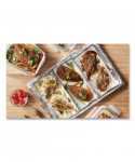 For food trucks, restaurants, catering companies, concessions, and cafeterias, Reynolds® Metro™ aluminum foil rolls come in handy. Whether you're grilling, roasting, freezing leftovers, or smoking a big rack of ribs, this economical and durable foil is great for heavier foods. And you can feel good about using it because Reynolds® aluminum rolls are made with 100% recyclable aluminum. Check to see if recycling facilities exist in your local area.