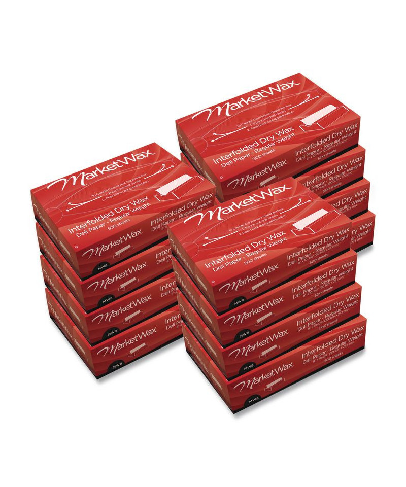 MarketWax Interfolded Dry Wax Deli Paper, 10.75 x 8, White, 500/Box, 12 Boxes/Carton