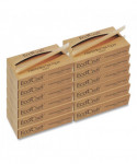 Blended soy-wax coating performs as well as petroleum-based coatings. Versatile sheets may be used for a variety of purposes: food wrap, scale sheets, pick-up sheets, basket liners, etc. Pop-up dispenser box.