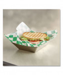 Excellent low-cost, low-waste alternative to paper cartons and plastic containers. Grease-resistant paper provides stain protection. Ideal for use as sandwich wrap or basket liner.