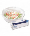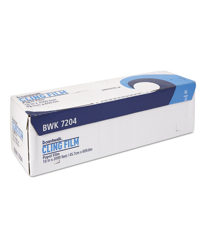 Professional quality, clear plastic foodservice film is ideal for covering bowls and food storage containers or for wrapping bulky foods. The standard 35-gauge thickness is strong and flexible enough to cling tightly. The roll dispenses from a cutter box that is coated to stand up to kitchen spills and grease splatters. The box can be wiped clean and kept sanitary. Cling wrap keeps air out to help foods stay fresh longer.