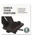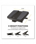 The Fellowes® Ultimate Foot Support features a free-floating platform that encourages lower leg movement to help reduce fatigue. Three platform height settings (4", 5.25" and 6.5") and up to 25° tilt. Surface massage bumps help relieve work-related stress. Elevates feet and legs to help relieve lower back pressure and improve posture. Work in comfort. Perfect for use in the office, home office, or wherever you sit for long periods of time.