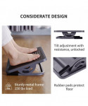 There are many benefits to using an under the desk footrest from fighting fatigue to creating better circulation in your feet and legs. Ergonomic adjustable angle design for optimal height and tilt easily tilts back and forth between 0 to 20°. A textured surface helps promote circulation and helps relieve stress and tension from your feet. Scratch-proof rubber feet prevent the floor from being scratched.