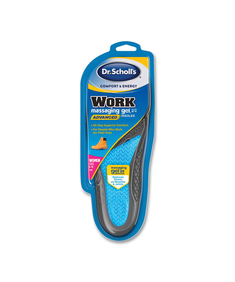 Comfort and Energy Work Massaging Gel Insoles, Women, Women's Sizes 6 to 11, Black/Blue, Pair