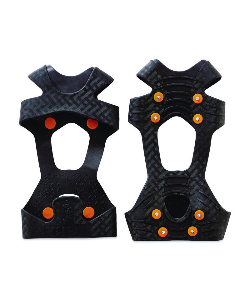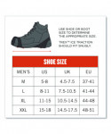 The TREX 6300 Slip-On Ice Cleats are lightweight ice grips for boots with eight replaceable spike grips and one-piece design for a snug fit over winter boots to prevent slip and fall injuries on the ice. These ice cleats provide tenacious traction and extra stability on ice and snow. These ice grippers feature eight rugged carbon steel cleats on the ball and heel of foot for grip on slippery terrain. These will fit over any style of boot or shoe for traction and stability during winter work or other winter outdoor activities. Tested to be flexible in temperatures down to -40°F (-40°C), the stretchable rubber material provides a secure fit and easy slip-on/off wear. These snow cleats are lightweight and can be folded small enough to be stored in a pocket or pack when not being worn. Stretchy design means no tightening or adjustments needed and should fit snugly on your boot or shoe. Use your shoe/boot size to determine the approximate size.