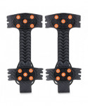 Adjustable slip-on ice cleats are lightweight ice grips for boots and shoes that provide tenacious traction and extra stability on ice and snow. Stretchable one-piece design offers grip to prevent slip and fall injuries on the ice. These ice grippers feature 10 rugged carbon steel cleats on the ball and heel of foot for grip on slippery terrain. Aggressive trade connects mid-foot and heel stud zones for extra traction. Available in multiple sizes and will fit over any style of boot or shoe for traction and stability during winter work or other winter outdoor activities. Tested to be flexible in temperatures down to -40°F (-40°C), the stretchable rubber material provides a secure fit and easy slip-on/off wear. An adjustable cord cinches tight for a secure fit. Reflective pull-on tab on the