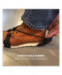 The TREX 6310 Adjustable Slip-On Ice Cleats are lightweight ice grips for boots and shoes that provide tenacious traction and extra stability on ice and snow. Stretchable one-piece design offers grip to prevent slip and fall injuries on the ice. These ice grippers feature 10 rugged carbon steel cleats on the ball and heel of foot for grip on slippery terrain. Aggressive trade connects mid-foot and heel stud zones for extra traction. Available in multiple sizes and will fit over any style of boot or shoe for traction and stability during winter work or other winter outdoor activities. Tested to be flexible in temperatures down to -40°F (-40°C), the stretchable rubber material provides a secure fit and easy slip-on/off wear. An adjustable cord cinches tight for a secure fit. Reflective pull-on tab on these ice traction cleats adds enhanced visibility. These snow cleats are lightweight and can be folded small enough to be stored in a pocket or pack when not being worn.
