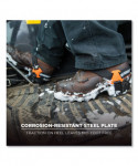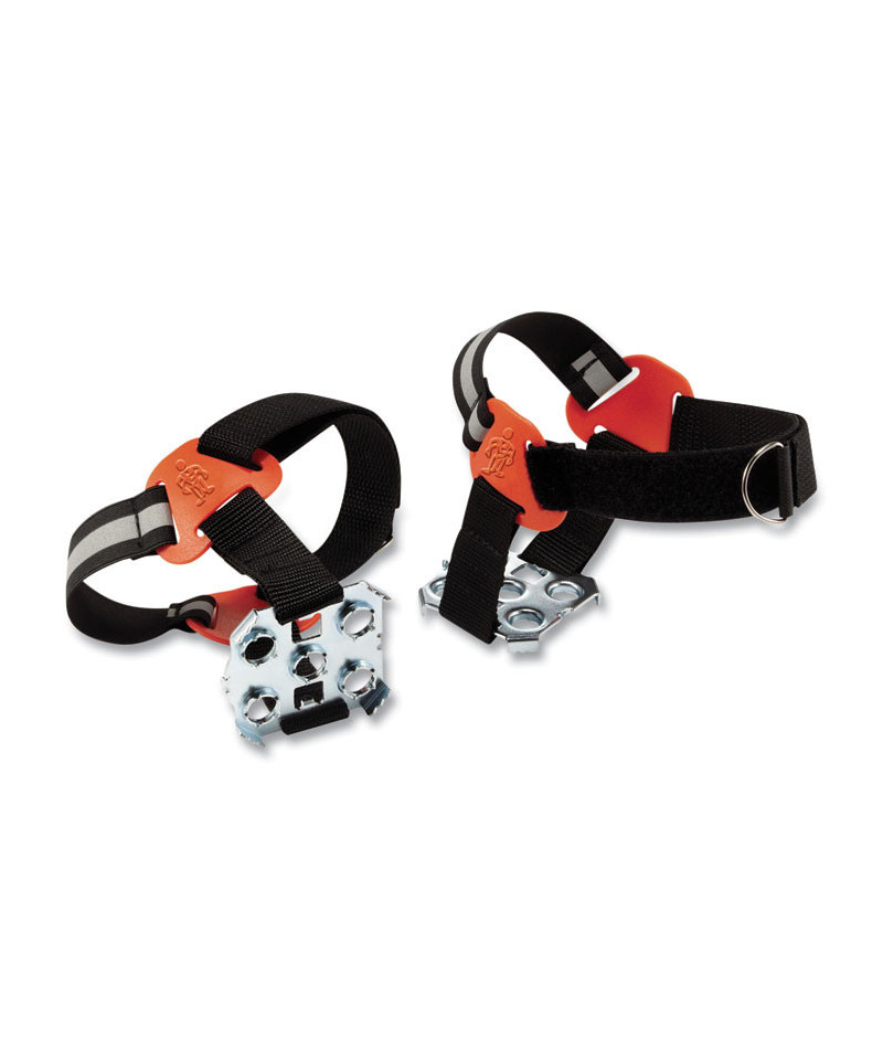 Strap-on heel traction cleats are ice grips for boots and shoes with rugged steel plates that turn boot heels into ice picks, leaving the mid-foot free for vehicle operation. Ice traction cleats help save money while preventing slip and fall injuries. These ice grips for boots provide the best in class all-direction traction on ice and snow during the winter months while leaving the toe and mid-foot free. These will fit on the heel of any boot or shoe. Durable webbing with hook & loop strap provides a secure fit and stability for winter work or recreation. Material is lightweight and is small enough to be stored in a pocket or pack when not being worn. Rear reflective accents help make wearers more visible in dark environments. These should fit snugly on your boot or shoe. Use your shoe/b