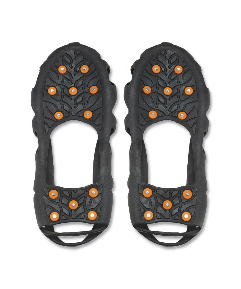Step-in ice cleats are lightweight ice grips for boots and shoes that provide tenacious traction and extra stability on ice and snow. Stretchable one-piece design offers grip to prevent slip and fall injuries on the ice. Contoured step-in 3D design easily wraps around boots and shoes for a superior fit. These ice grippers feature 12 rugged carbon steel cleats on the ball and heel of foot for grip on slippery terrain. Available in multiple sizes and will fit over any style of boot or shoe for traction and stability during winter work or other winter outdoor activities. Tested to be flexible in temperatures down to -40°F (-40°C), the contoured 3D design allows you to step into these ice traction cleats for fast and easy on/off. TREX Ice Traction should fit snugly on your boot or shoe. Stret