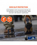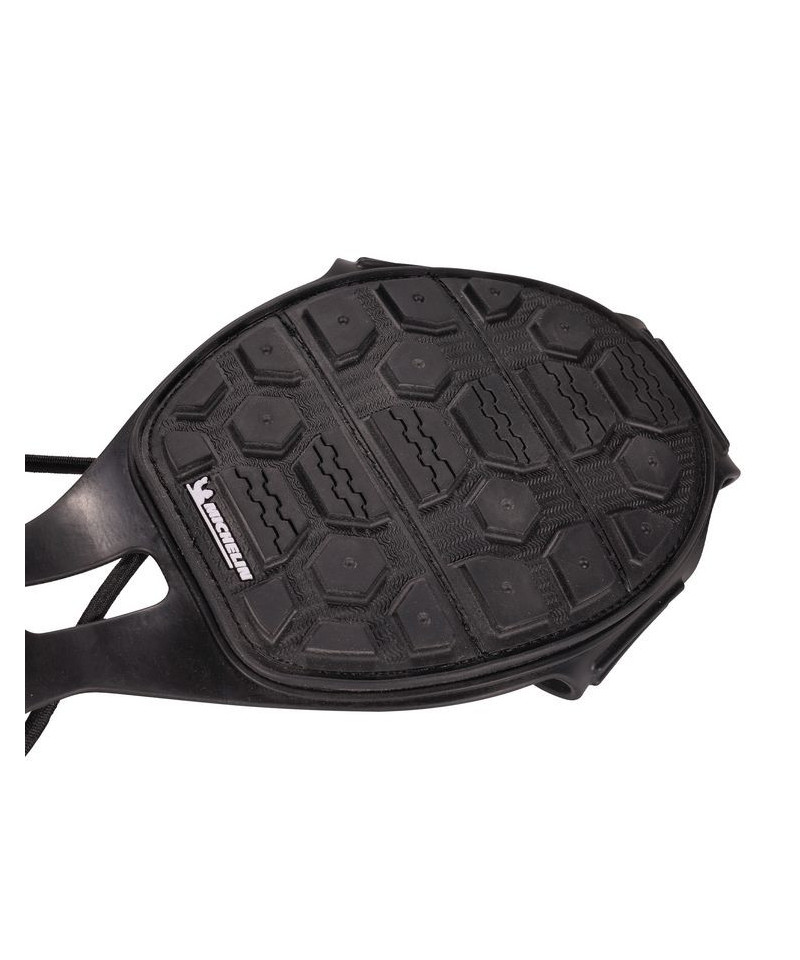 Spikeless traction devices for shoes reduce the risk of slips and injuries by providing spike-free traction on slick surfaces. Powered by Soles by Michelin, these are the industry's most advanced spikeless traction device. Designed for work environments where spiked ice cleats are not preferred, these shoe and boot grips make for easy and safe transition between indoor and outdoor. To achieve traction without spikes, the treads are constructed with a Michelin ice control compound, the same innovative technology found in their winter driving tires. Strategically placed grooves allow for efficient water evacuation when pressure is applied. Preventing water build-up is particularly beneficial on smooth indoor surfaces. Micro-pumps increase adhesion by properly distributing pressure to mainta