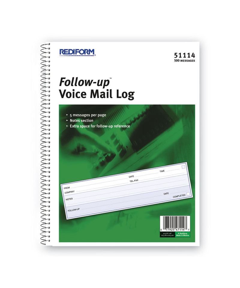 White forms with blue-shaded notes space. Space to record Caller, Company, Phone/Fax numbers, Date, Time and Notes, with additional lines for detailed notetaking of each call. Completed check-off box for quick visual reference.