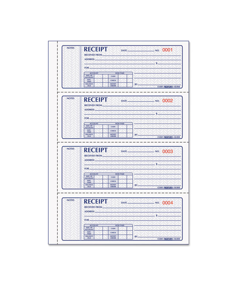 Add to cart Money and Rent Unnumbered Receipt Book, 5 1/2 x 2 3/4,... $13.30 Safety tint on original rubs off if erased. Unnumbered for customized record keeping.