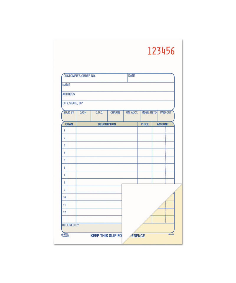 Perfect for keeping hard copy records of your sales, the Adams® Multipart Sales Order Pad features preprinted layout prompts for all the important details. With entry areas for point of sale, customer, order, terms information and more, anything one might wish to capture can easily be accommodated. Open area at top provides space for your company's logo, and the order form's carbonless, multipart format lets you provide a receipt to your customer while keeping clean, administrative copies. The pad's wraparound cover also allows you to place the front cover between sets as you fill out a form, minimizing the potential for write-through.