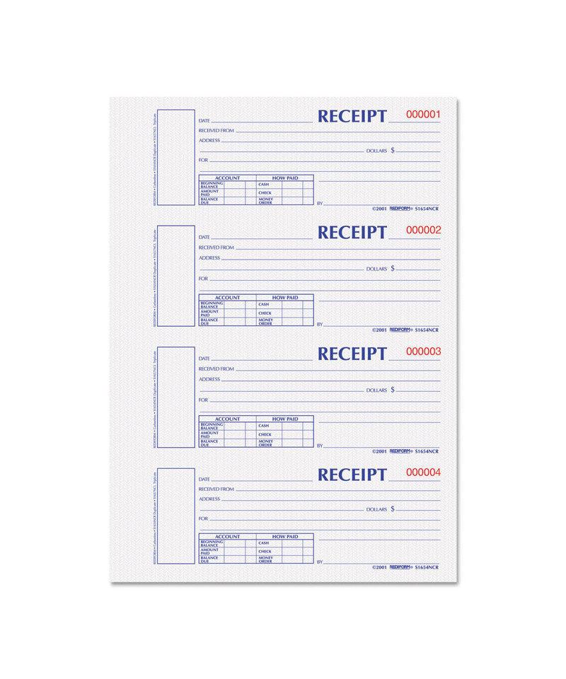 Hardcover protects receipt sets and keeps your copy secure for a permanent record. Consecutively numbered in red. Separate box on each receipt for notations.