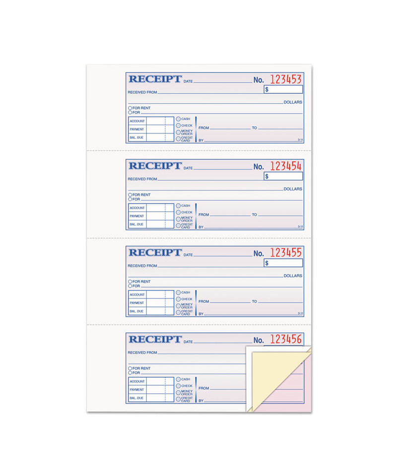 Add to cart Money and Rent Unnumbered Receipt Book, 5 1/2 x 2 3/4,... $13.30 Safety tint on original rubs off if erased. Unnumbered for customized record keeping.
